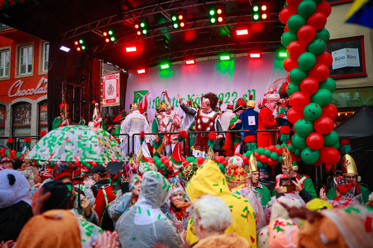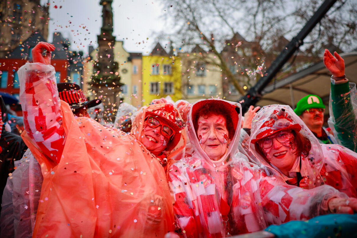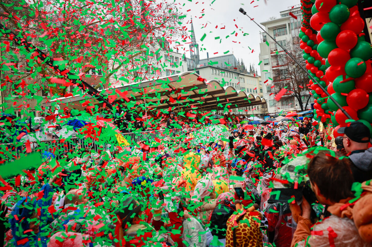 Um 11:11 Uhr regnete es Konfetti zum Startschuss auf dem Alter Markt. Das Dreigestirn und Kölner Bands feierten mit den bunt kostümierten Jecken den Beginn des Straßenkarnevals. Sechs Tage lang wird Kölle wieder außer Rand und Band sein.