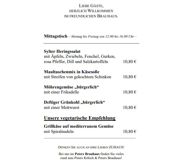 Kommen Sie doch mal auf ein frisch zubereitetes Peters Kölsch vorbei, wir freuen uns auf Sie!