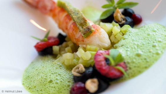 Auf der Karte findet man zum Beispiel Wolfsbarsch mit Fischrahm, Bottarga, Spargel und Ei oder Salzlwiesenlamm mit grünem Spargel und Malfatti. Das Degustationsmenü im Gourmetrestaurant hat vier, fünf oder sechs Gänge (141,50 Euro, 153,50 Euro und 164,50 Euro) wählen. Im Piccolo gibt’s das Drei-Gang-Menü für 64 Euro. Im Sommer sind selbstgemachtes Eis und Kuchen im Angebot.
